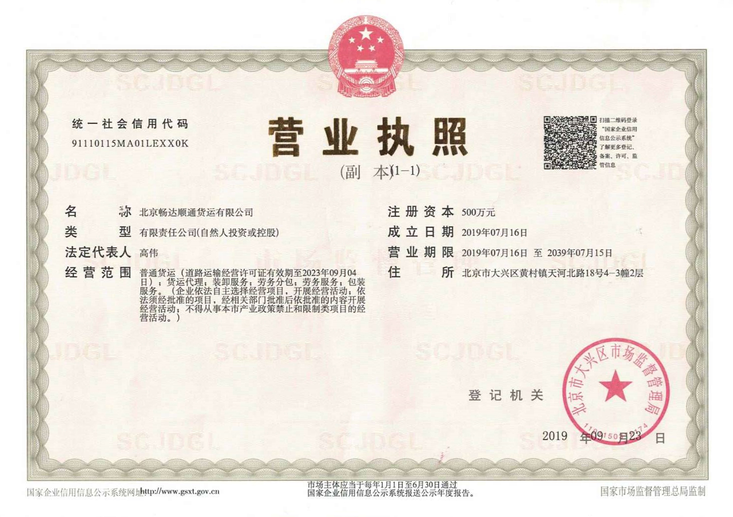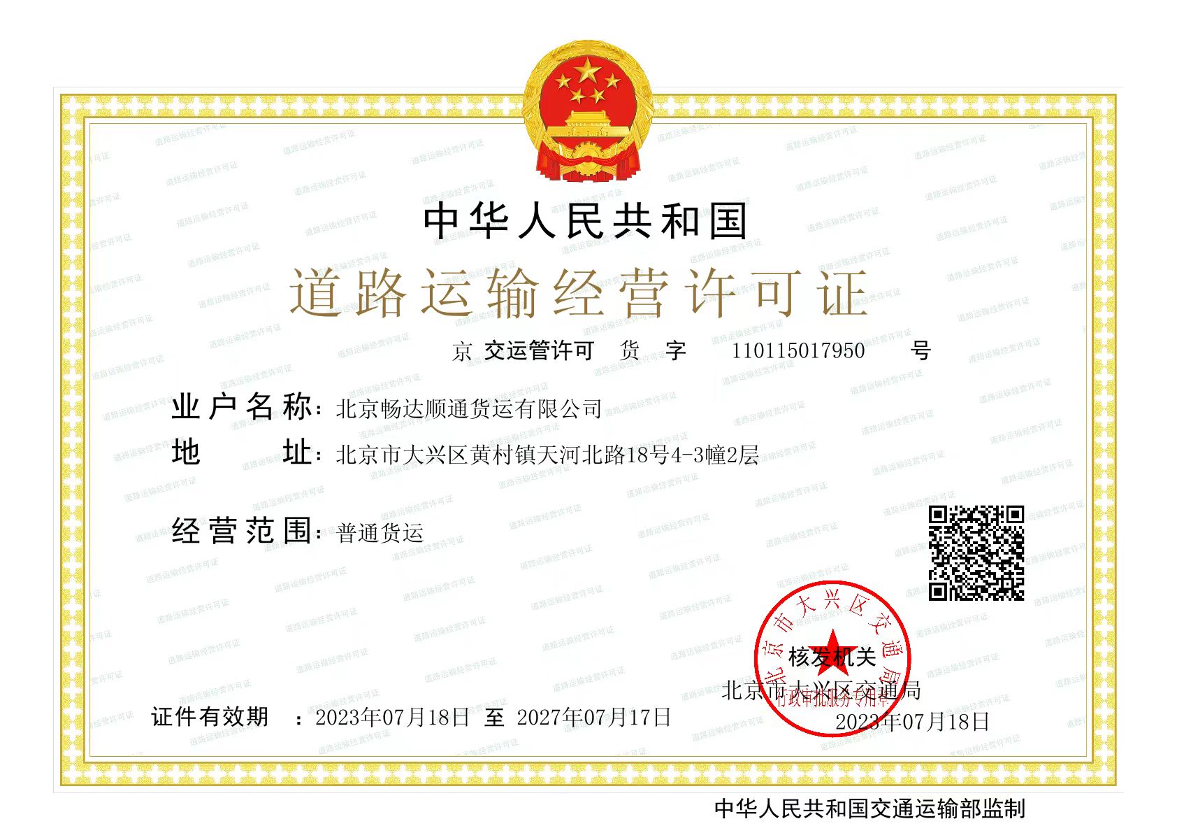 北京暢達順通貨運有限公司,是經北京市工商行政管理局、北京市交通委員會批準合法的國內貨運物流公司。